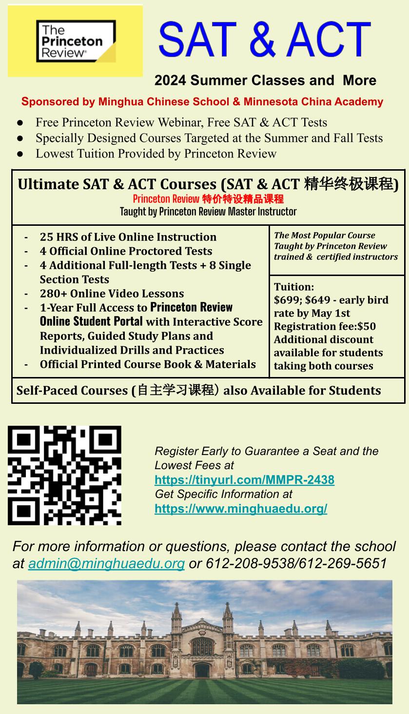 明华中文学校Princeton Review 2024 ACT/SAT 课程介绍